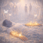 在接受療癒時,冥想的同時有看到一些影像,大概近似於國高中趴著午睡,眼球被壓迫後的閉眼殘像,在殘像中模糊看見蝴蝶與帷幕垂墜被拉起的映象,在閱覽筆記與上網搜尋後,才發現似乎與守護天使傳達的內容有關聯,心中驚嘆不已。